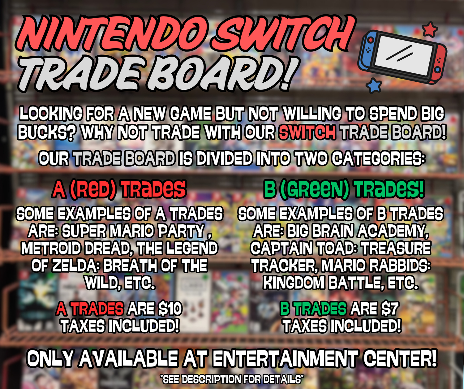 You can trade it in for a different one with our trade board! A great way to try out new games, or to get the one you are looking for!