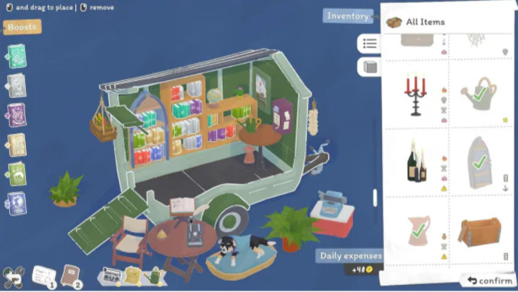 - Stock and decorate your Tiny Bookshop with different books and items.